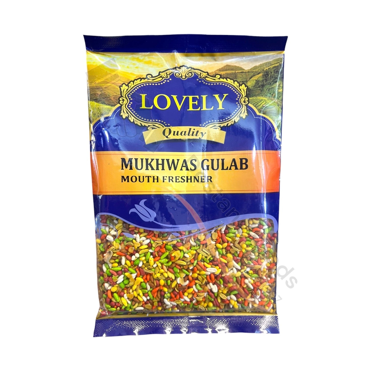 Mukhwas Gulab ist eine aromatische Mischung aus Rosenblättern und Gewürzen, die nach indischen Festessen genossen wird. Schmeckt sehr lecker, aber nicht zu viel auf einmal, denn sonst drohen Bauchprobleme. Der Hersteller kann je nach Lagerbestand variieren.